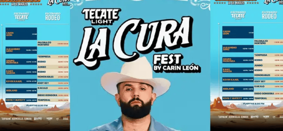 Los organizadores del festival Tecate La Cura publican los horarios oficiales para los conciertos del 14 y 15 de marzo. La programación establece la distribución de las presentaciones musicales en el Escenario Tecate Light y el Escenario Rodeo dentro de las instalaciones de Expogan Hermosillo. Crédito: Expreso