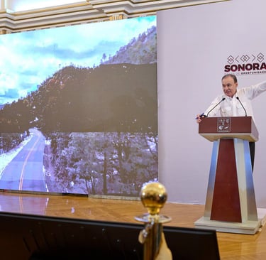 Como seguimiento a los proyectos de infraestructura estratégica, el gobernador Alfonso Durazo Montaño anunció una inversión de 4 mil millones de pesos para la modernización integral de la carretera Guaymas-Chihuahua este 2026, con el respaldo absoluto del Gobierno de México encabezado por la presidenta Claudia Sheinbaum Pardo a través de la Secretaría de Infraestructura y Comunicaciones y Transportes (SICT), obra clave de conectividad que fortalecerá la movilidad, el comercio y el turismo en el noroeste del país. Crédito: Telemax