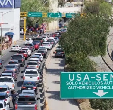 La frontera de Nogales se prepara para enfrentar una intensa congestión vehicular durante los próximos días, derivada del periodo de asueto extendido que inició el pasado viernes con motivo del natalicio de Benito Juárez. Crédito: Expreso