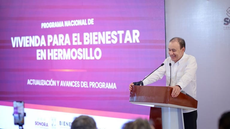 Sonora avanza con paso firme hacia la mayor transformación habitacional de su historia gracias a la gestión del gobernador Alfonso Durazo Montaño, quien aseguró la tierra necesaria y las condiciones para que el Programa Nacional de Vivienda, impulsado por la presidenta Claudia Sheinbaum, se traduzca en resultados concretos, con un total de 20 mil viviendas para Hermosillo y una meta estatal de 65 mil hogares rumbo a 2030. Crédito: Telemax