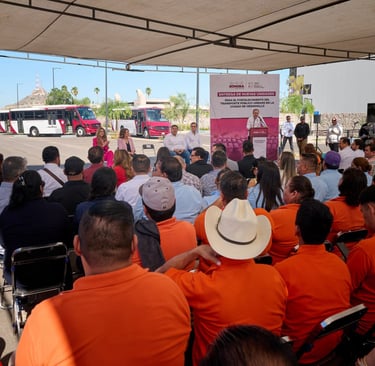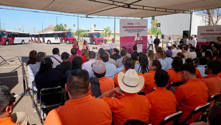 El gobernador Alfonso Durazo encabezó la entrega de 21 nuevas unidades para fortalecer el servicio de transporte público en Hermosillo, con una inversión de 63 millones de pesos. Crédito: Radio Sonora
