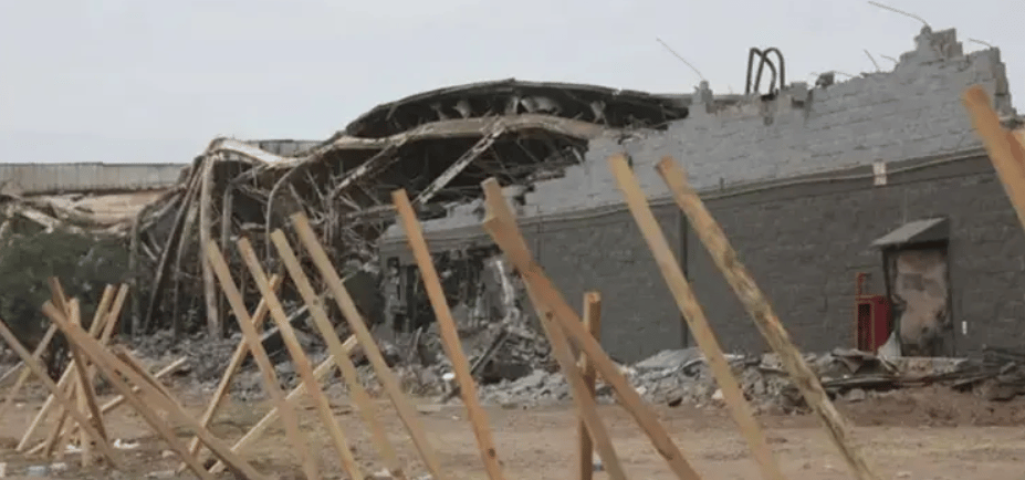 La maquinaria pesada arribó este miércoles a las instalaciones de lo que fue la tienda Sam's Club Vado del Río para iniciar formalmente los trabajos de demolición y remoción de las estructuras colapsadas por el incendio ocurrido hace más de un mes. Crédito: Expreso