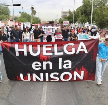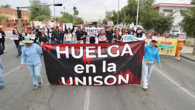 Los sindicatos de trabajadores y académicos de la Universidad de Sonora elevaron este martes su presión sobre autoridades universitarias y estatales, al reiterar que no cederán en sus exigencias mientras no existan respuestas concretas en temas de salario, prestaciones y rezago laboral, durante una jornada de protesta que culminó en el Palacio de Gobierno de Sonora. Crédito: Expreso